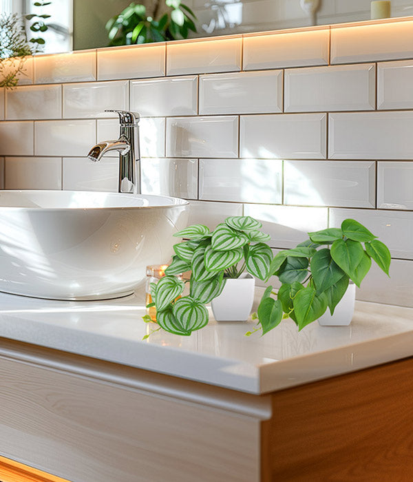 Miracliy 4 Pack Fake Plants Small Artificial Mini Faux Plants Indoor Black Bathroom Accessories for Room Home Office Shelf Decor