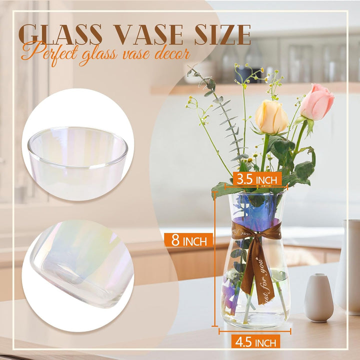 Miracliy Glass Flower Vase Iridescent Vase for Flowers Bouquet Decorative Vase for Home Decor, Centerpiece, Gift (4.5¡Á8 Inch, Iridescent)